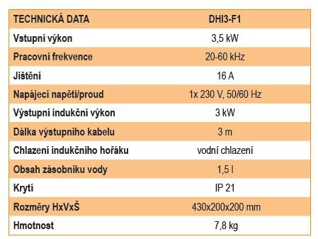 indukčního hořáku. Indukční ohřev FAN DHI3-F1 je určený pro rychlý a účinný bodový ohřev feromagnetických
